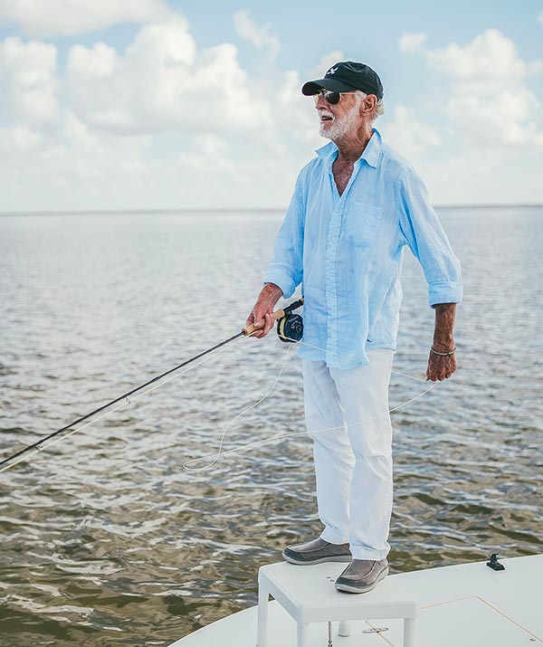 Within the fly fishing community, Sandy is held with a reverence typically reserved for the likes of Tiger Woods or Tom Brady—and for good reason. One of the founders of the Florida Keys Fly Fishing School (referred to in certain circles as the “Harvard of fly fishing”), Sandy has been throwing flies in the Keys for more than 40 years. He’s also fished and explored throughout the Caribbean, the Bahamas, Central America and the Seychelles. He’s fished specs on the map like Christmas Island and Palau, and was one of the first U.S. anglers to fish for Atlantic salmon on Russia’s Kola Peninsula before the fall of the Iron Curtain.