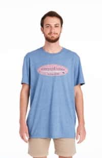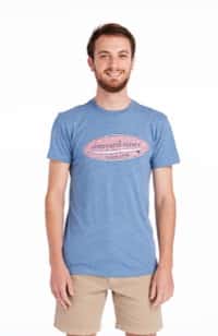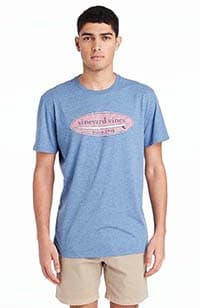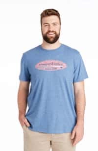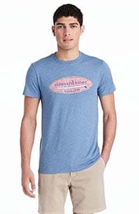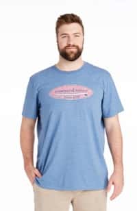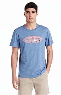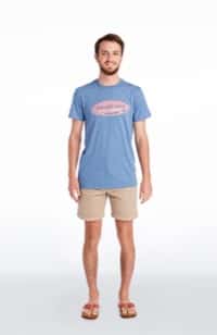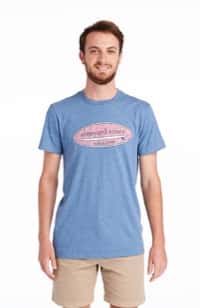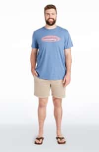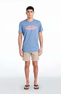 Models are wearing the Hatched Surf Logo Island T-Shirt