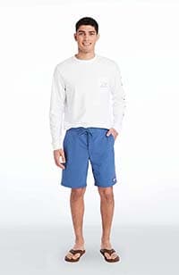 Made with stretch and rash protection, our classic-fitting bathing suit features a 9" inseam.