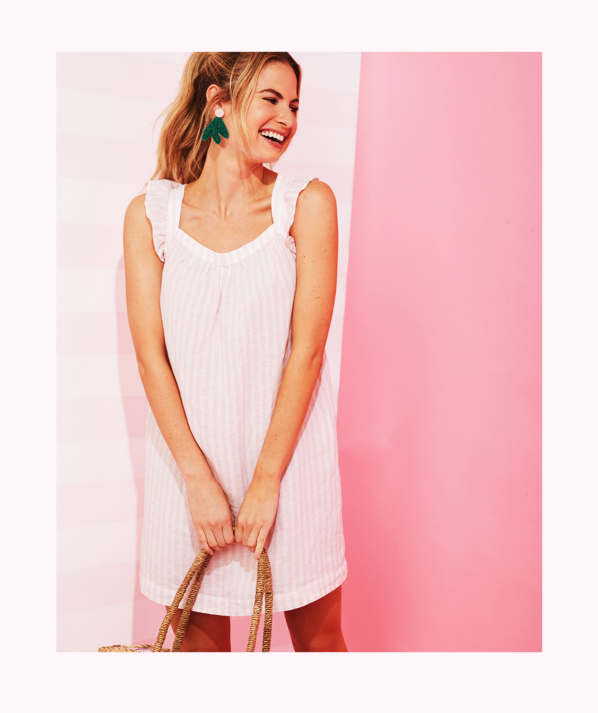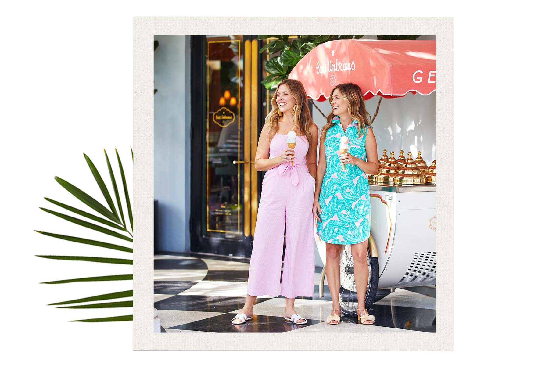 We teamed up with our friends Beth and Danielle, the entrepreneurial sister duo behind the lifestyle brand Palm Beach Lately, to bring you a slice of iconic Palm Beach style. With Palm Beach Lately's signature pink and white stripes as our backdrop, we worked together to create a collection of Palm Beach styles that can transcend generations. "It was exciting to see our stripes come to life! It's going to be fun for women to see all the pink," said Danielle.