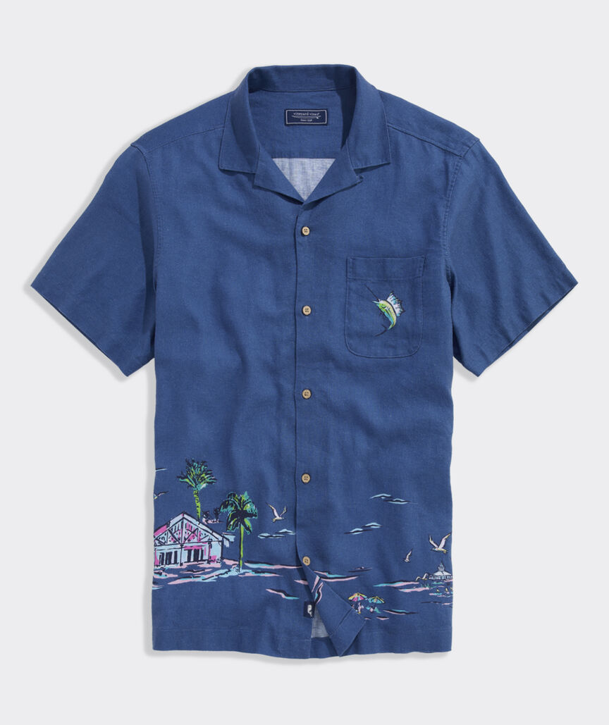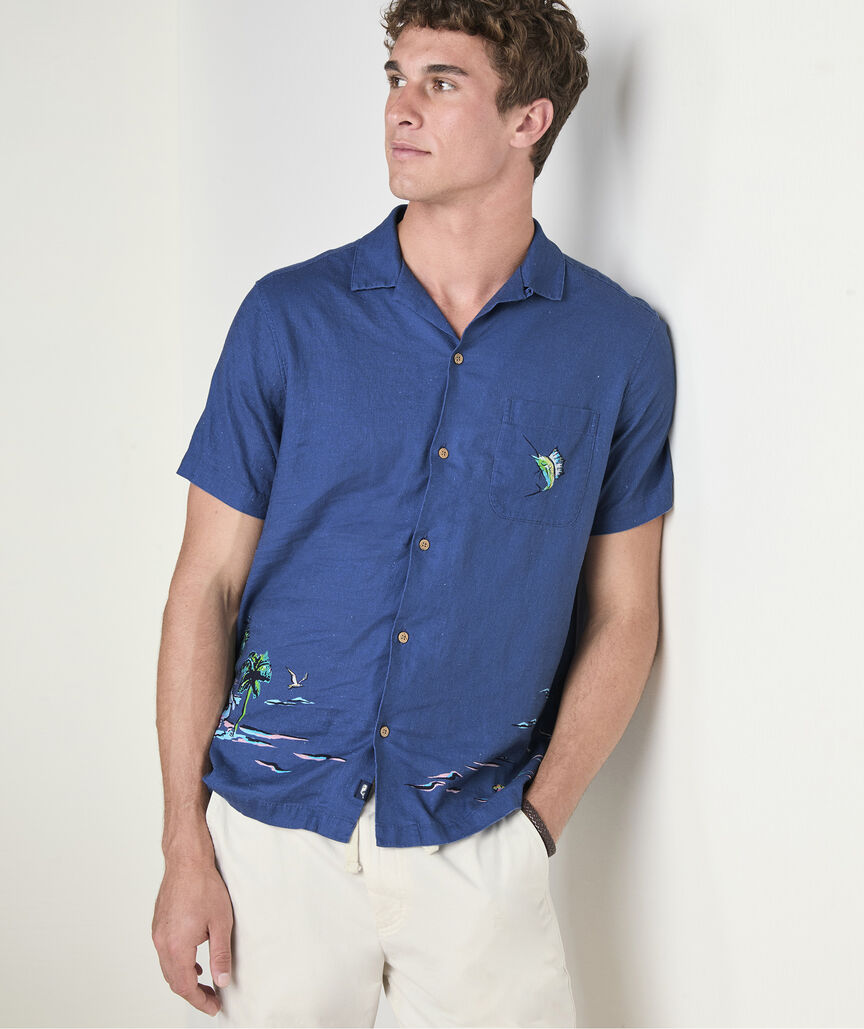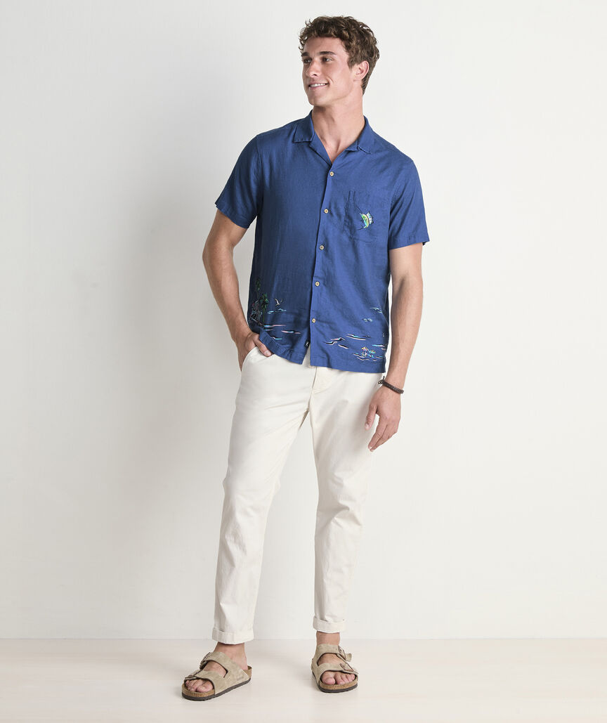 Gasparilla Coastline Linen Blend Short-Sleeve Cabana Shirt