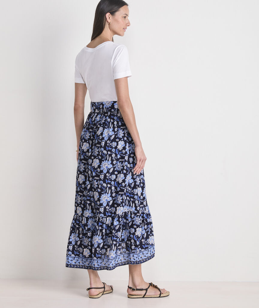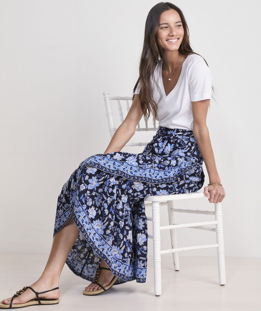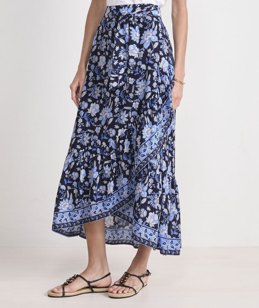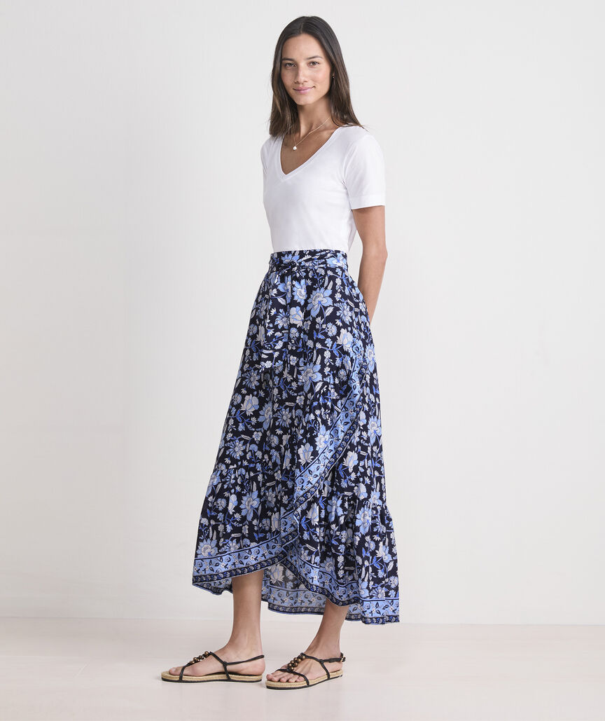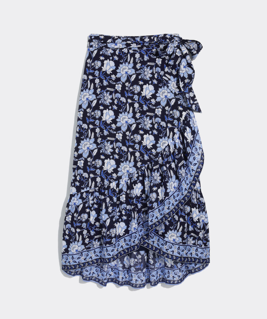Channel vintage beachy vibes with the fun pattern play and chic wrap detail of this high-low hem skirt.