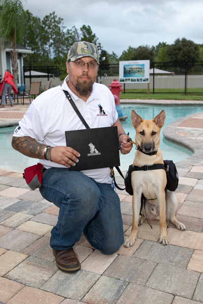 These mostly-rescue dogs train for three-to-six months and are then paired with a warrior for a three-week in-house training program at their facility in Ponte Vedra, FL, all at no cost to the warrior. When the dogs are fully trained, they bring up to twelve warriors from all over the place to their facility in Ponte Vedra, FL, all at no cost to the warrior. These new best friends train together from almost the moment that they meet.