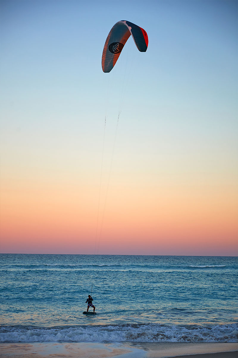 As we sat on the beach at the end of our day, we talked to Markus about what it's like living according to the wind, going wherever the breeze and the tides take him. “I’m not gonna lie, it's pretty awesome,” he told us with a laugh. “When I'm out there, most of the time it's pushing hard and training. But every time I get to a new place, just getting out on the water and cruising around, it's pretty magical. It’s not just being on the water, but with kiting we're flying above the water. I'm just standing there, flying along, and it's like totally silent—it's super peaceful.”